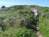 Cross the footbridge and start climbing uphill. After a short distance turn left up another path; this soon hairpins past a viewpoint on the left and continues through the trees. Shortly afterwards it curves to the right and heads up more steps. At a junction with another path it curves to the left to continue uphill before emerging out onto the clifftop at TA009968. Turn left to follow the path as it runs along the cliff edge; it slowly climbs for half a mile to a summit before starting a long descent.