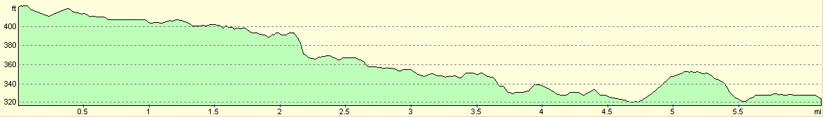 This makes a total distance of 6.1 miles, with 127 feet of ascent and 223 feet of descent.