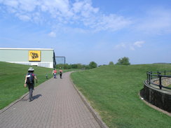 NotesThis was always going to be an unusual walk - my sister had entered herself and some friends in a charity walk organised by Uttoxeter Lions. She asked me if I wanted to come along, and as I had been a member of Leos, the junior version of the Lions, two decades before, and so it seemed like a good idea to help them out in a small way once more. Since the forecast was for unseasonably warm weather, Sencan decided she would come along on the stroll. My dad dropped me off outside Wilfred House in the centre of Uttoxeter just before eight, and we went in to register. My sister, Sue, and her friends Clare and Kath joined us later. The room was filling up with people who could easily be split into two groups - walkers and runners. The presence of the latter was explained by the fact that the event was allied to the LDWA. I have a somewhat cautious impression of the LDWA; the two parts of walking and competitive running seem to be utterly incompatible. Basically, there seems to be no real organisation for walkers such as me: the Ramblers is about short, one-day walks; the MBA is for people who get out into the wilds more whilst I spend much of my time in lowland areas; and the Backpackers' is for people who do long backpacking trips, where most of my walks are single-day affairs. Perhaps it is time for a Trailwalkers' association, for people who are doing long multi-day or single-day walks. Five happy, fit people strode out of Wilfred House, stopping only to take a 'before' photo, to be compared with an 'after' photo later. In nearly 900 walks I had only ever walked with one other person at a time, so it felt strange to be stepping out with four other people, two of whom were strangers. Last week I had attempted to trace the route description on a map, and although I had succeeded with the first half of the route, I had been less successful with the second half. We walked out of the town past a brand-new sculpture of a satyr and passed the station and the racecourse to reach the floodplain of the River Dove. The burners of a bright red hot-air balloon ripped through the air, and we all looked up to watch it glide past, seemingly perilously low to some power lines. The dry weather meant that all the paths were dry underfoot, and we made good time towards the bridge that carries the A50 over the River Dove. A few late-starting runners roared past us, and we realised that walkers would be in the minority on this walk. From here I was on terrain that I knew well, and we followed a narrow line of banking to the elegant suspension bridge over the Dove. This led us up the hill to the church, which is dominated by an ancient church. A short stroll then took us down to the first checkpoint at the old well. We spurned the opportunity to visit my parents' house nearby and crossed the A50 to follow footpaths towards the next checkpoint in Marston Montgomery. The runners ahead of us had neatly depressed the luscious green grass meaning that navigation was easy; we just had to follow the trail of flattened grass. It descended to cross a stream before climbing up the other side to reach Somersal Herbet church. Another path took us north for nearly two miles, and we chatted as we walked. Some of the high points gave us expansive views over the Dove Valley to the west, although sadly these were somewhat spoilt by the hazy sky, a sign of the weeks without rain. We found the second checkpoint at Somersal Herbert with little trouble and greedily drunk the water on offer. It had not been a cold morning when we had set off and it had only got hotter; the signs were that it was going to be a scorcher. More paths took us west, descending down across fields towards the Staffordshire Way at the ruined Sedsall Farm. I knew this area like the back of my hand, and it felt great to be walking over such familiar territory. I have always had a soft spot for the farm at Sedsall, and it was a shame to see how it had decayed over the past few years; there were more holes in the roof and the fabric of the structure was decaying further. I would love to be able to buy the place to renovate it, but alas that would never be. The Staffordshire Way took us north, flirting indelicately with the Dove whilst it crossed the grounds of Abbotsholme School. This led us on to Rocester Bridge, where we said goodbye to the Dove and headed into Rocester. On the way we passed Arkwright's Tutbury Mill, built in 1781. I was surprised to see that this was now an academy school run by JCB; a company that dominates the local area. The mill had been very tastefully restored, and the glass additions to the front and side seemed to complement the structure. A quick stroll further on and we reached the third checkpoint at the new market cross in the centre of the village. My memories of Rocester were of a rather unkempt centre of the village, complete with ugly concrete flats. These had now all been replaced, with no small thanks due to JCB's money, with neat housing replacing the flats. We stopped at the checkpoint to visit the shops - I bought a couple of ice creams to try to keep my core temperature down; it was already a scorching hot day. Roads took us across the River Churnet towards the carefully-landscaped grounds that surround the JCB World Headquarters. Once a cheese factory, the factory has expanded into a surprisingly beautiful area. An old railway junction has been totally subsumed, part of the embankment now forming a helicopter landing pad and the rest now lakes. We walked past fishermen - hardly a usual sight right outside a large factory - and then towards a school. I must admit to loving JCB; not only did I go to a couple of product launches in the late seventies and early eighties (complete with smoke and laser display, stunning effects to a young child), but whilst at primary school also made a model JCB out of cardboard. This was seen by someone who worked at the factory, and was put on display in their reception area! I went to 