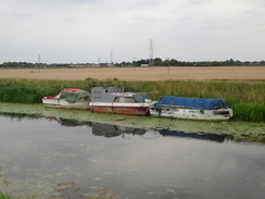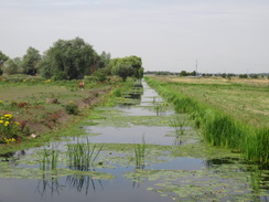 NotesThis walk was one of two legs of the Hereward Way that I was both looking forward to, yet was also slightly apprehensive about. The trail east from Peterborough follows the River Nene to Whittlesey before continuing across the perfectly flat Fens to the town of March. It promised to be an enjoyable stroll but I did not have particularly fond memories from when I had walked it ten years ago. Since the car parking at Peterborough railway station is so expensive I decided to drive to March and get an early train to the city. Unfortunately the drive was excruciatingly slow because of tractors and lorries; I was trapped for twenty minutes behind a lorry that scarcely managed to scrape above thirty miles an hour. It is a common problem at this time of the year in the Fens, when farmers spend every daylight hour harvesting their fields. To make matters worse I had misprogrammed the SatNav to take me to Manea station rather than to March. I arrived at March station and parked up, buying a ticket for the day for just £2.80. My delays in getting to the station meant that I had missed my train and I was resigned to wait for an hour to catch the eight-thirty train. However the matrix display showed a Peterborough train was due in at just after eight so I nipped on this, happy that my earlier problems had not delayed me too much. On the train I chatted to a pleasant lady who had just been to the Cambridge Folk Festival with her son; she had seemingly had a very enjoyable time. I decided to take a different route from Peterborough station back to the River Nene where I had left it the previous week. Instead of going through the centre of the city I headed along a main road past a large Asda store. Due to a closed stretch of path I followed the road to the main bridge over the river where I joined the Hereward Way beside a superb stone building. The concrete steps that lead down to the river were dominated by ducks, geese and swans and their droppings. Indeed the entire area stank of ammonia and it was pointless trying to avoid stepping in the mess. Birds may be beautiful to look at, but I doubt about the cleanliness or hygiene of having such a high density of them in a city centre. Indeed, the mess made what should have been a good walk out of the city notable for all the wrong reasons. Things improved as the path and river headed under a large bridge that carries the A1139 high overhead. It was turning into a warm day despite the cloud cover and I was concerned that I would not have enough water to complete the walk, despite the extra litre that was in my backpack. The walk eastwards was interesting, not the least because of the wind turbines that stood on the other side of the river, joining the smoke-belching chimneys of the brickworks near Whittlesey. This stretch of path was along a cycle path that was fairly quiet; only two cyclists came past along with a jogger whose over-excited dog was running twice the distance to and fro. After a couple of miles the Shanks Millennium Bridge came into view. This gracefully-arching cycle bridge was not marked on the map and can only be seen as a positive thing; in particular it grants access to the Flag Fen area from the south of the river. Unfortunately after this the going became worse as the cycle path ended and the trail followed the flood banking with a road alongside. Initially it proved easy for me to walk along the top of the bank but after a while the vegetation was so overgrown that I was forced to walk along the road. The roadside verge was wide and the views over the river were pleasant but the road was annoyingly busy, meaning that I had to step onto the verge to avoid the worst of the traffic. Soon the massive guillotine gates of the Dog-in-a-Doublet lock became visible ahead. I love the name 'Dog-in-a-Doublet', and can only wonder if it has anything to do with the famous Rubens paintings. The lock is also home to a sluice that marks the upstream limit of the tidal Nene, despite being many miles from the sea. The nearby eponymous pub was boarded up; it must be hard to run a pub in such a remote location. Here the trail left the Nene, heading south along tracks and roads into the town of Whittlesey, the last settlement of any size that I would be passing before the end of the walk. It was a relief to be off the road and the tracks were surrounded by the riotous colours of wildflowers. I headed to the town square where I found the George Hotel, now a Wetherspoon pub, was open despite the early hour. Knowing that I was unlikely to get anywhere else to stop today I nipped in for a quick drink and a rest. It was a classic Wetherspoons pub; neat and tidy with some reasonable beer on tap and lots of local information on the walls, and I read some of this as I supped. The rest of the day was rather hard on feet that soon started to overheat in the overly warm weather. A road took me southeastwards out of the town towards the wonderfully-named Turningtree Bridge, after which the trail headed along the northern bank of the Briggate River. A cruiser passed me as I walked, surprising me as I had not realised that the river was navigable. It was a pleasant stroll and for the first time in the day I was starting to get the best of the 360-degree views that the Fens grant over the surrounding flatlands. The trail joined a road for a short distance at Angle Corner Bridge before diverting off to follow the Twenty Foot Drain northeastwards. Many fishermen were sitting on the other side of the river, their cars lined up at the top of the bank. Several bridges broke the monotony of the stroll, especially a massive metal one that carried the March to Peterborough railway line over the drain. Soon the trail joined a road that headed arrow-straight through Turves; I was glad that I had stopped for a rest in Whittlesey as the pub in Turves does not open on weekday afternoons. And no wonder; it is hard to think of a more remote spot and scattered settlement - it i