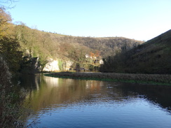 The return journey was more complex as I took two diversionary paths - the first around Chee Tor and the second around the combined Litton and Cressbrook tunnels. From the western end of the trail at Blackwell Mill, head east along the trail for a mile until just before the western portal of Chee Tor tunnel is reached. Cross the viaduct in front of the tunnel and then turn right through a gap in a stone wall to join a path that descends steps down the steep valley side. Soon a T-junction with another path is reached; turn right to head down some more steps that head under the railway viaduct to reach a footbridge over the River Wye. Cross the footbridge, and on the other side turn right to follow a path with the river on the right. This path soon reaches a set of stepping stones that lie along the river, actually under the cliff in places. This stretch of path can be utterly impassable after bad weather so care needs taking, but in dry weather it can be a superb stroll. At the end of the stones a boardwalk continues on across a boggy area of ground as high cliffs rise up on the other side of the river. The path climbs steps up the hillside to continue high above the river before descending to cross a plank footbridge over a stream at Wormhill Springs. Cross this and turn right across a tumbledown stone wall, still following the river on the right. It crosses another plank footbridge and climbs up steps once more above the river, shortly after this the path becomes flatter and easier. A short stretch of boardwalk interrupts the path as a footbridge over the river becomes visible ahead at SK127734. Here you have two choice; you can cross the footbridge and turn half-left to head uphill along a grassy slope; this is quite a contrast to the rigours of the earlier path. At the end of the field squeeze past a field gate and continue on uphill, then take a pedestrian gate beside a second field gate to reach the western end of a railway viaduct at SK130733. The second option is not to cross the footbridge over the river and instead continue on along the northern bank of the river; it curves to the right and a fifth of a mile after the footbridge it passes under the railway viaduct. Climb some steps just before the viaduct to reach the old trackbed at the eastern end of the viaduct. From the viaduct, turn left to start following the old railway line eastwards for 1.8 miles. It passes through Miller's Dale station and approaches the western end of Litton tunnel. Well before the tunnel portal is reached, turn left at SK158729 to join a path. This path slopes downhill and hairpins to the left to descend steps to reach a footbridge over the river. Cross this and follow a path that leads out onto a road in Litton. Turn right to follow the road eastwards, passing through a gateway and between the mill buildings, which have now been converted into houses. The track passes the main mill building on the right and then curves to the right to cross a mill leat. On the other side it curves to the left; pass a field gate and head on with the river on the right. Follow this path for a mile as it accompanies the river in two big loops, eventually passing under a sheer limestone cliff to the left before reaching a wooden footbridge at Cressbrook at SK172728. Note this concessionary riverside path can flood after heavy rain. Cross the footbridge, and on the other side the path curves to the right, keeping a wall on the left to reach a footbridge across a weir on the Wye on the left. On the other side of the bridge turn right to head up a sloping path with some steps. The path hairpins to the left and continues slowly climbing to the south. After a quarter of a mile it climbs a couple of steps to reach a pedestrian gate that reaches the old railway line by the western mouth of Cressbrook Tunnel at SK172723. Turn left to start following the old railway line southeastwards for four miles until Bakewell station is reached at SK222690. Just before the old station building is reached turn right to pass the gable wall of the building to reach a public car park. Walk through this to reach a public road. Turn left along this and follow it as it curves to the right to join the B6048 road and heads downhill; there are pavements on both side of the road. Just before the B6048 road ends at the A619, turn left across Coombs Road to reach the Bakewell Bridge car park, where this walk started and now ends.