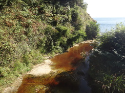 DirectionsThis walk starts off at Hook's House campsite at NZ945057. Leave the campsite and join the B1447 road. Turn right along the road and follow it as it immediately curves to the right to head downhill. Carefully follow the road as it enters Robin Hood's Bay. After 0.4 miles the road curves to the right and then left to pass the Grosvenor Hotel on the left, where the Cleveland Way is joined. Follow the road as it heads south downhill; 0.4 miles after the hotel it reaches the Bay Hotel at the bottom of the village. Just before the Bay Hotel, turn right up the narrow Albion Street that heads between houses. When it ends, turn left up Flagstaff Steps and then up boardwalk steps. This leads out onto a flagstone path that runs along the clifftop. The path passes the end of a hedge on the right and then curves to the right; a few yards further on it turns left through a field gate. It runs between fences to another field gate and continues on before descending down steps to reach Boggle Hole at NZ954040. Cross a track to reach a footbridge over Mill Beck near the YHA. On the other side, climb up the hill for a short distance to reach a road. Turn right along the road for about five yards and then turn left up some steps. These lead steeply up; the path follows a fence on the right and continues east-southeastwards along the cliffs. It passes several fields and becomes enclosed between fences before starting to descend once more, including a flight of steps to reach a footbridge over Stoupe Beck at NZ957035. Cross the footbridge and follow steps that lead uphill, with a rocky track to one side. The path ends at a road beside Stoupe Bank Farm. Follow the road southwards for a couple of hundred yards; just after a right-hand bend turn left through a stone squeeze stile to join a path that runs between fences. The path soon meets the edge of the cliffs, and then turns right to parallel the cliffs with a fence on the right. Go through a pedestrian gate and follow the path, still with a fence on the right. It passes a bunker complex on the left, part of which is hanging over the cliff edge and presumably will not last much longer. The path is quite easy to follow and not strenuous as it follows a fence on the right. It passes a pedestrian gate at NZ966026 to enter the Ravenscar property and then crosses a footbridge over a stream. The path curves to the right inland alongside the fence, then to the left to a second footbridge, then right once more to continue inland. The path then joins a track at NZ970021 beside a field gate. Turn left to join the track and follow it as it climbs uphill for a third of a mile. At NZ974018 turn right to join a gravel path that climbs steeply uphill through a gorse-laden hillside. The gorse ends and the path continues through trees before curving slightly to the left to meet a track. Turn left down this track and follow it as it continues to climb eastwards. Some of this track is made of bricks, presumably from the local brickworks. The track curves to the left and the gradient slackens as it gains a north-easterly heading; it becomes an access track to a house on the left, passes a National Trust shop and then ends at a road junction of Raven Hall Road and Station Road in Ravenscar at NZ980016. Turn right to head southeastwards along Station Road to pass a cottage on the right, and then turn left along a rough track called Hammond Road. Follow this as it heads towards the cliffs; it becomes grassy for the last few yards to the cliff edge, where a path leads off to the right along the edge of the cliff. This winds around as it generally parallels Station Road across the field to the right. When the field ends the path continues on, following a fence on the right. It passes an old radar station in the field to the right at NZ991008. The path continues to gently fall; it goes through an area covered with ferns before opening up once more and reaching a short but steep descent down steps. At TA009978 the path passes through a pedestrian gate and then falls and rises across a dry gully. It continues to gradually fall as it passes Red House Farm in a field to the right. At TA009973 cross a stile and start heading down steps and wooden stepladders downhill. This leads to a causey path after which the path climbs slightly before falling down more steps to reach a footbridge. On the other side steps lead up for a short distance before descending to reach a second footbridge, this one over the Hayburn Beck at TA009970. Just off to the left is the small beach at Hayburn Wyke, where the stream trickles down a little waterfall onto the beach. Cross the footbridge and start climbing uphill. After a short distance turn left up another path; this soon hairpins past a viewpoint on the left and continues through the trees. Shortly afterwards it curves to the right and heads up more steps. At a junction with another path it curves to the left to continue uphill before emerging out onto the clifftop at TA009968. Turn left to follow the path as it runs along the cliff edge; it slowly climbs for half a mile to a summit before starting a long descent. The path descends steeply down stone steps into Sycarham Wood and then climbs up stone steps on the other side of the valley. It levels off for a few hundred yards before descending down steps into another gully, crossing a stream and continuing on. At the end of the next field the path descends into a valley by Salt Pans at TA019952. Do not take the obvious path that curves away to the right inland, and instead climb uphill along a narrow path that follows the cliff edge before emerging out into a field. At the end of this field go through a gap in a hedge to enter a second field. At the end of the next field the path descends steps into a gully and then ascends once more up steps. At the top the path curves to the left past Cloughton Wyke to head eastwards. Before long it descends a few steps to a footbridge over a stream in Hun Dale 