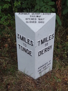 The next few miles followed the trackbed south; there was not many signs of the old railway, aside from some modern mileposts measuring the distances between Derby and Tonge. The surface was tarmac, and the going was easy. The old bridges seemed magnificent, with many having three stone arches so common on old Midland Railway lines – for some reason I always find these attractive. A few joggers and cyclists passed, but there was little of note until I passed the site of an old station that was still largely intact despite having lost its passenger services the best part of a century earlier.