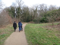 DirectionsThis walk starts off at High Barnet tube station, at TQ25039614. Leave the station by its main entrance, and follow its access road that slopes up to reach the A1000 road. Turn left to head down this road; the pavement is on the right. Just before a railway bridge at the bottom of the hill, the London Loop trail comes in from the right. Continue under the rail bridge, and immediately on the other side at TQ25379585, carefully cross the road using a pedestrian crossing and turn left up Potters Lane. The road ascends, with a pavement on the right and railway sidings away down to the left. At the end of a right-hand bend after 240 metres, and just before houses on the left start, turn left off the road and descend a slope to reach an area of grassland. Skirt a hedge on the right with the grassland on the left; this passes the end of a road on the right and joins a surfaced path. Follow this until a house is reached on the right; here angle right down a path that heads across the middle of a triangle of grass to reach Meadway at TQ25099636. Turn right to head east along Meadway; after 250 metres turn left up Burnside Close. This curves to the right and when it soon ends, continue on along a surfaced path between fences. When the path ends at the end of Bosworth Road, turn left through a clappergate beside a field gate into an area of parkland called King George's Field. Follow a hedge on the left past the first field, and then follow the path as it curves left to cross a farm bridge over a stream. On the other side it curves right to climb uphill to the northwest. At the top of the hill, the path reaches a clappergate near a field gate that leads out onto Hadley Green Road at TQ24629713. Turn right to follow Hadley Green road northeastwards; you can either follow the pavement or walk along the green parallel to the road on the left. After 400 metres the road ends at a T-junction with another road; turn right along this road, which soon ends at another T-junction. Turn right at this junction, to continue on down Hadley Green Road. This soon passes a church on the left, and then passes through a white gateway. Continue along this road as it heads southeastwards; 300 metres after the church at TQ25299723, and opposite a large house, turn left to join a path that immediately enters some woodland. A few metres into the trees, turn right off the main path to join one that heads southeastwards, paralleling the road off to the right. After about 850 metres a car park is approached on the right; veer right into the car park. Follow a track leading east out of the car park; pass two vehicle barriers to reach a bridge over a railway line at TQ26309713. On the far, eastern, side of the bridge, follow the track as it curves to the right to head southeastwards, slowly descending; it soon curves to the left to resume its easterly course through the trees. After 850 metres a 'pompous' bridge over a stream is reached, with Beech Hill Lake a short distance away through the trees on the left. Cross the bridge and continue east uphill along the track, avoiding a road on the right; 700 metres after the bridge, the path emerges from the trees into a small area of grassland; continue across this and join Games Road at TQ27759674. Turn left along games Road, immediately passing through another white gateway and then passing the Cock Inn on the right. Immediately after the Cock Inn, turn right down Verwood Drive. As this soon starts to curve right, turn left to continue straight on south along Chalk Lane. After 300 metres this passes a church on the right, and curves left to reach the A111 road opposite Cockfosters tube station. Carefully cross the road to reach the tube station at TQ28079640. Head straight on along the station car park access road, with the tube station to the right; however after a few metres, angle left to reach a barely-visible gate that marks the start of a footpath. This heads east between the car park on the right and a cemetery on the left. When the cemetery ends, continue straight on for a few metes into a field, and then turn left, immediately crossing a plank bridge over a stream and heading on. It passes a relatively open area on the right, and just before the cemetery ends on the left, it enters some woodland. Follow the path through the trees; at a path junction turn left along another path. This soon curves right and descends to cross a plank bridge over a ditch and then emerges out into an open area. Follow the treeline on the right until it reaches a gap in a metal fence that leads out onto an access road. Cross the road ahead and turn right for a few metres to reach a small obelisk on a triangle of grass near the entrance to Trent Park at TQ28079687. Pass the obelisk on the right, and continue along the access road as it enters a car park. Pass the Trent Park cafe on the left, and continue down a track that descends northeastwards through the trees. The track slowly curves right, and 600 metres after the car park crosses a little plank bridge and emerges out into a field. Follow a hedge on the left, and then turn left along a broader track, still with the hedge on the left. Continue along this track as it heads northeastwards, skirting a lake away to the right to reach a triangular junction of paths in front of trees at TQ28929764. Head straight on along a broad track that heads uphill through the trees. The gradient slackens, and the track continues through the trees, slowly curving to the left. When a junction is reached, angle left along a path; do not continue along the track. Just before the path curves left near the edge of the woodland, turn right along a narrower path to reach a footbridge over a ditch that leads onto a road at TQ28629817. Turn left along the road, passing a tall obelisk away in the field to the left. After 100 metres, turn right to reach a plank bridge and clappergate that leads to a path that runs northwards between fences and hedges. This slowl