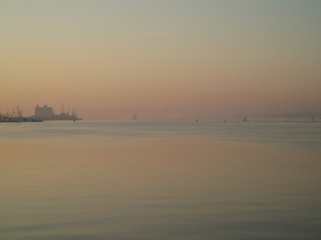 The sun rising over the river.